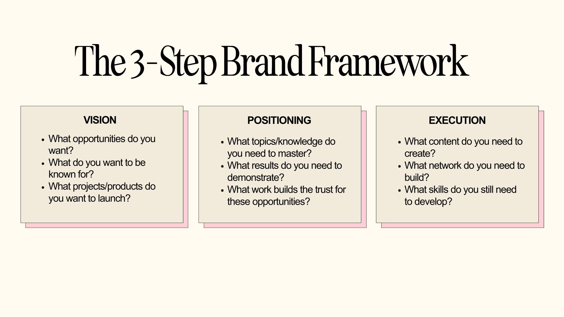 Here's a framework from our workshop to help you get clarity. Oh and come join us live next week, we’ll be diving into brand building in so much more detail!